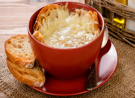 מגישים חם מאד. אפשר להניח טוסט מעל המרק.